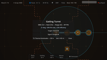 - Run mutators — pick Iron Current, Swarm Protocol, Frugal Engineer or Glass Cannon to reshape a run.